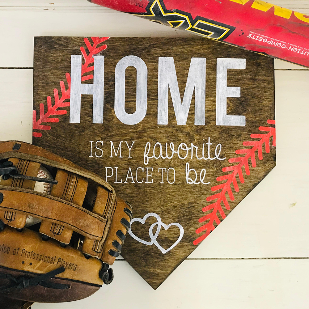 When I met my husband we quickly found that we had a common passion for softball. As a result we would spend hours playing catch and talking. We have since played on several co-ed softball teams together. Since our love for softball was what kick-started our relationship I have always wanted to make a sign using a home plate. When I came up with the design home is my favorite place to be for my etsy shop I designed it with the future project of adding this design to a home plate in mind. This home plate sign an easy project that doesn’t take too much time and is theĀ perfect DIY home decor for any baseball or softball loving families home. It would also make a perfect end of season baseball or softball coaches gift. Each of the players could sign it with their name and number.