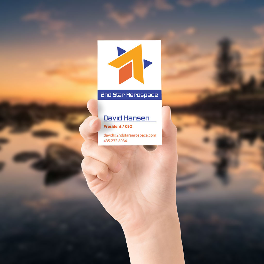 2nd Star Aerospace’s business card is a basic business card with the company name and basic contact information on it.